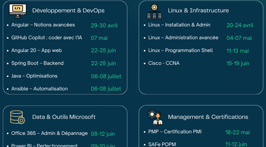 Themanis c’est un organisme de formation certifié Qualiopi spécialisé dans les métiers de l’informatique, et le développement professionnel (management).